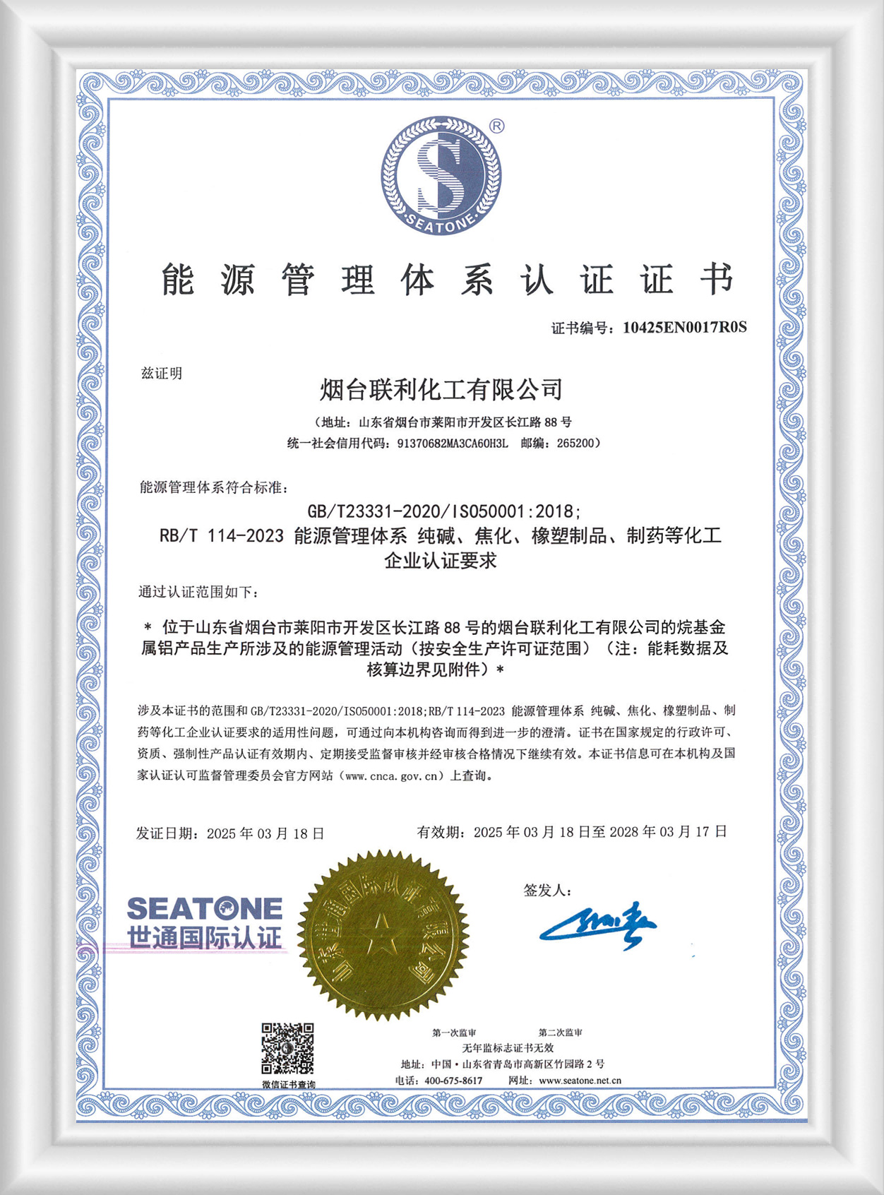 能源管理體系認證證書